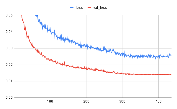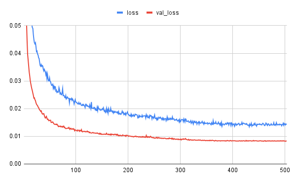 lossよりもval_lossの方が良い値になっていますが、loss(訓練時)の方はデータ拡張により難易度が上がっていることが影響していると推測します。